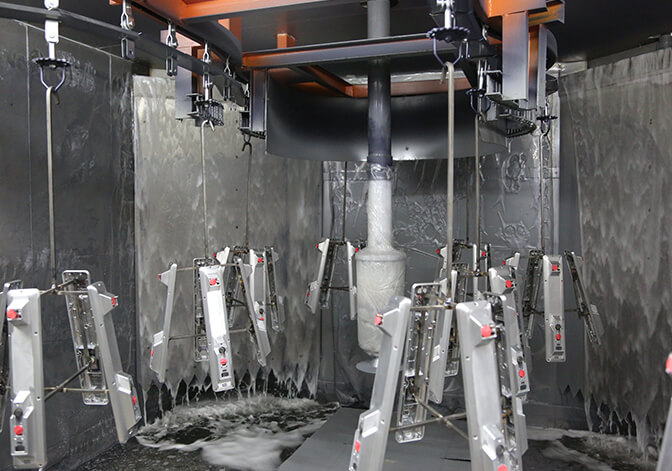 Automatic painting line: Huanyu currently has two automatic painting lines and one manual line, two of which have been put into operation for 22 years. Designed based on the principle of Ω automatic painting, the production line has stable quality and high degree of automation. The monthly spraying scale of the three production lines can reach 800000 pieces.
